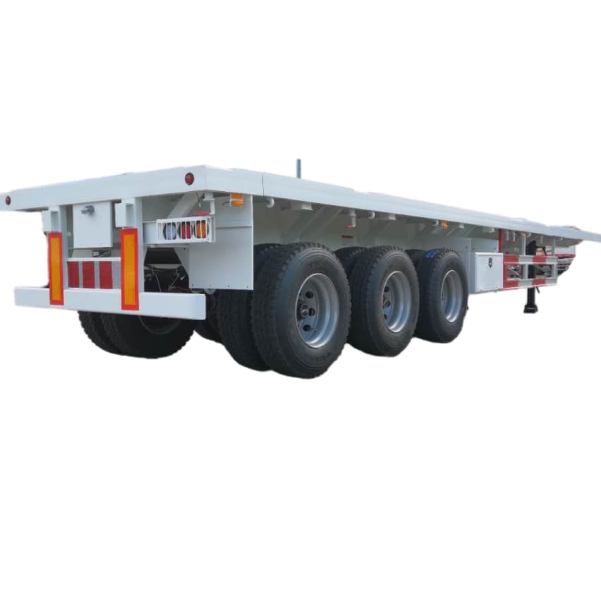 La remorque à plateau 40T se compose d'un train de roulement et d'une carrosserie à plateau, qui est principalement utilisée pour le transport de conteneurs de 40 pieds et également de conteneurs de 20 pieds pour le transport longue distance et le transport sur courte distance, avec une capacité lourde de 40T à 60T et avec un grand espace pour les marchandises. . Il est largement utilisé dans les navires, les ports, le transport routier, le transport logistique avec conteneurs. Il peut s'agir de 2 essieux ou de 3 essieux, même 4 essieux sont disponibles.